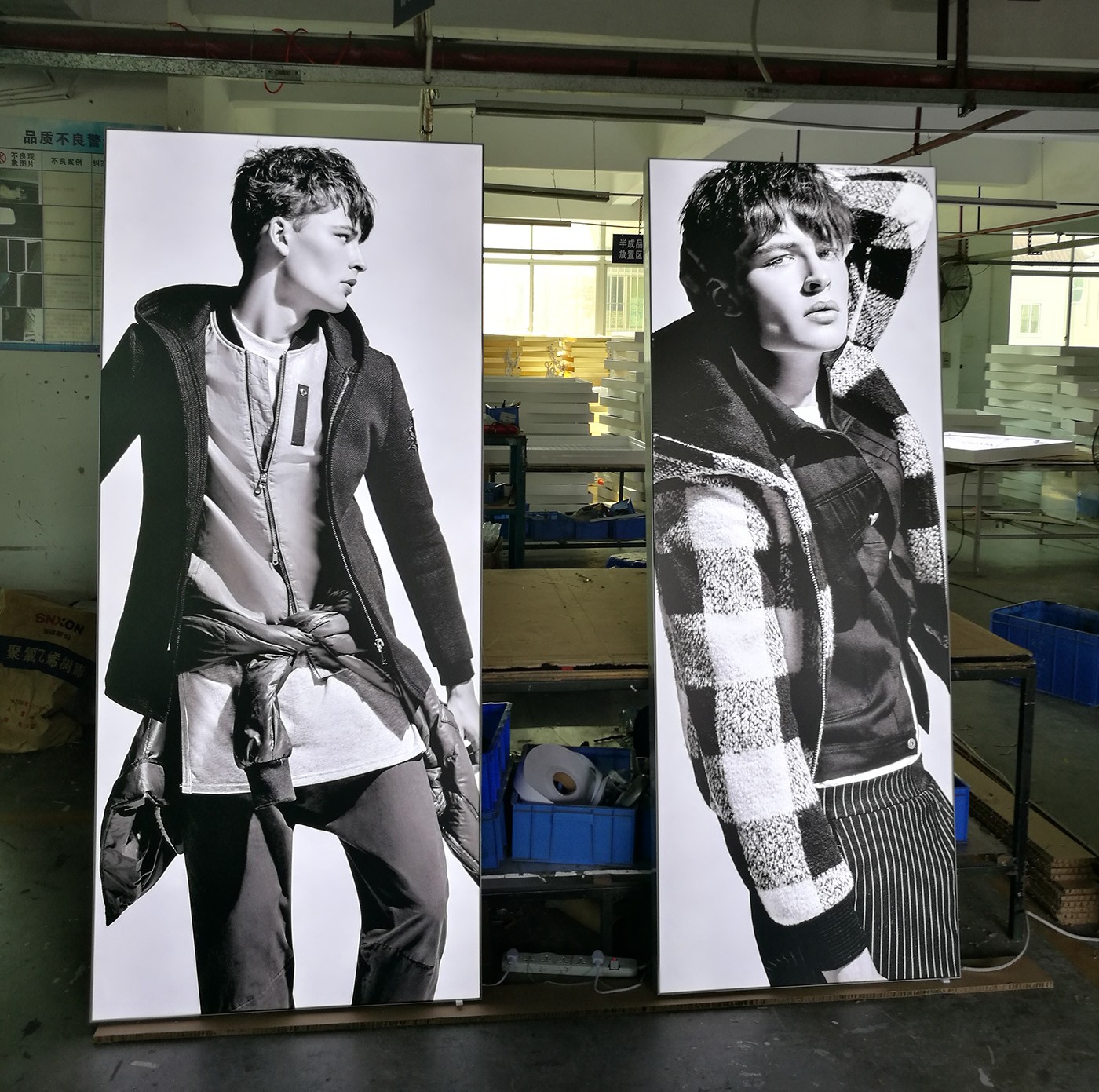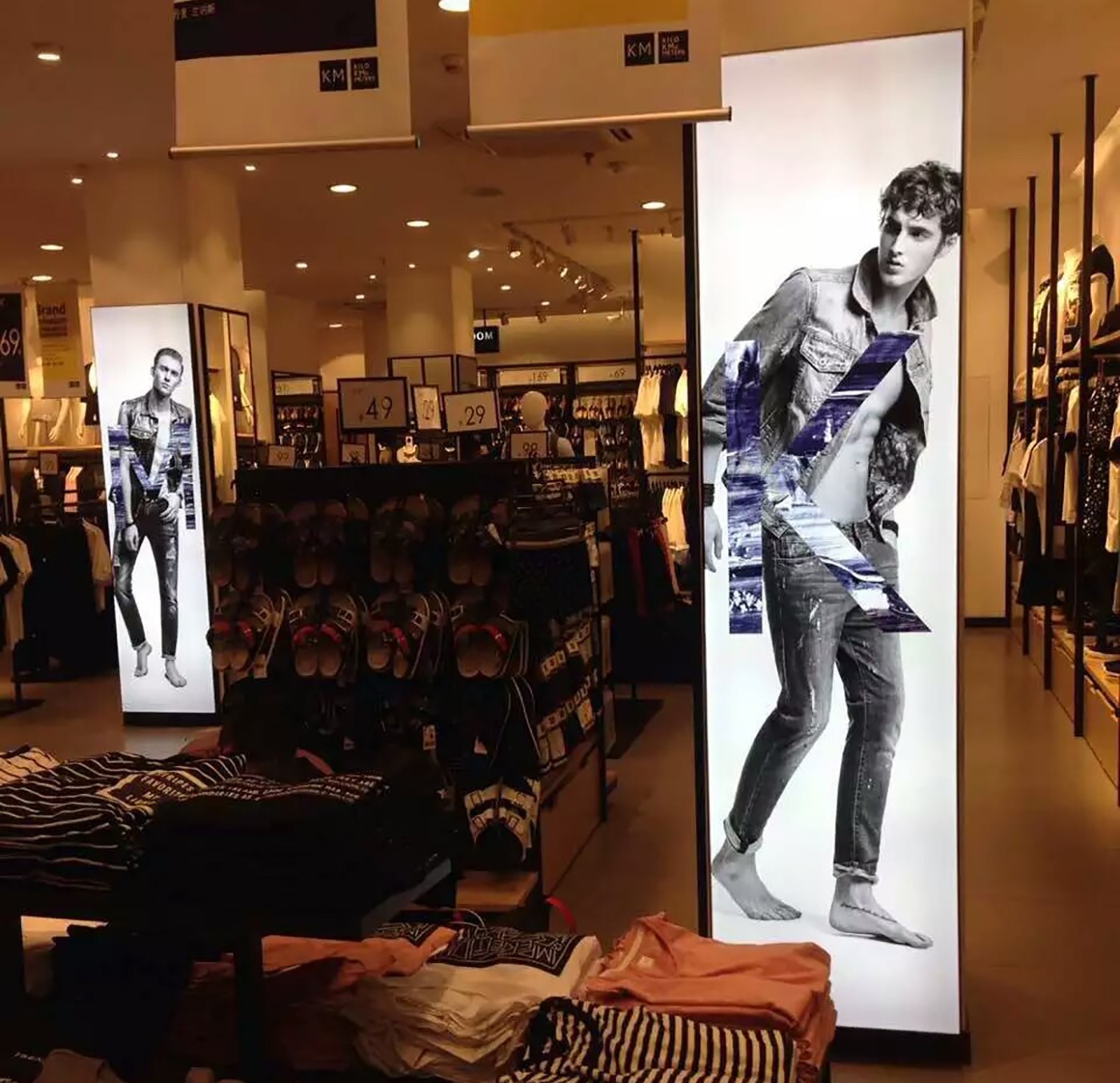 海晨為卡門服裝制定了整套的解決方案,其中不僅僅只是有燈箱的部分,而是包括了整個店面需要用到的一切廣告展示用品。從設(shè)計、生產(chǎn)、安裝到售后服務(wù)一體化,為客戶解決問題的整體解決方案。