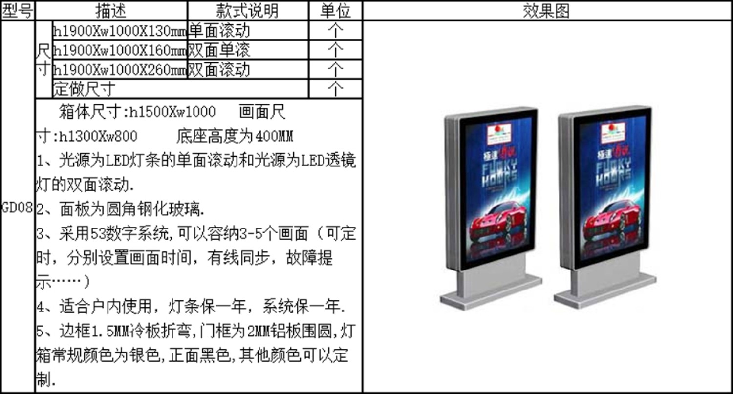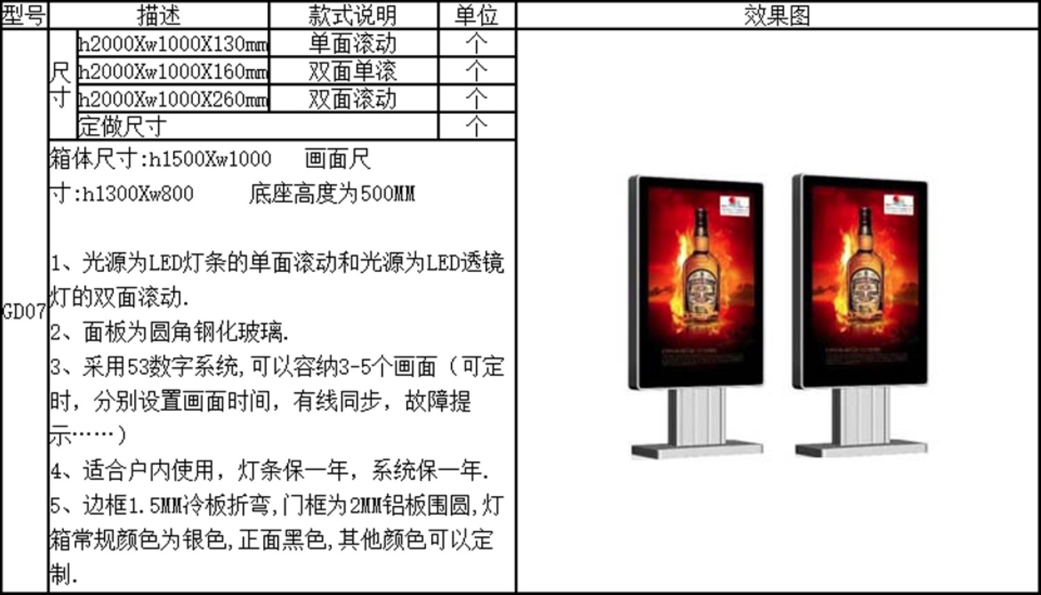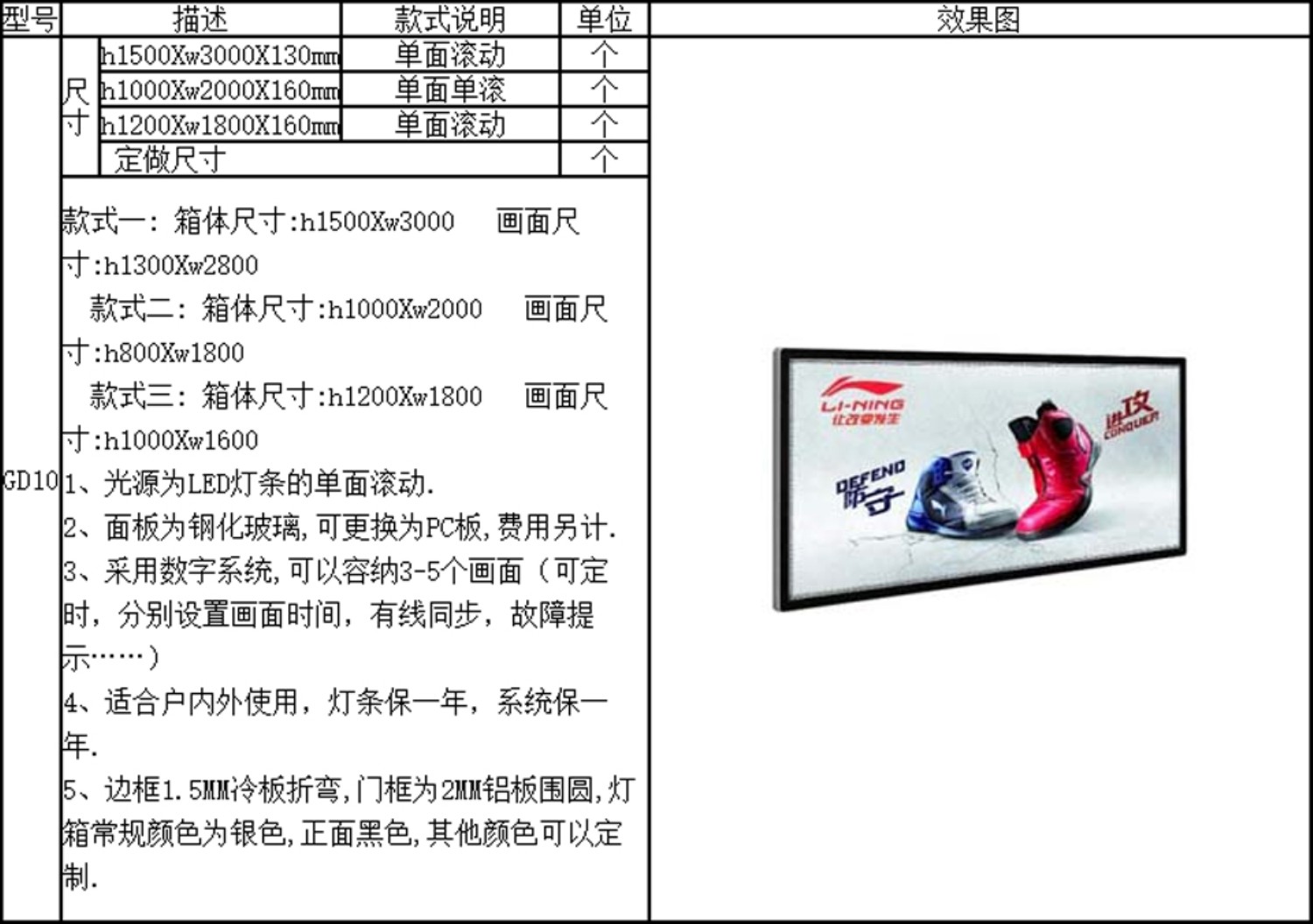 采用優(yōu)質(zhì)鋁合金邊框,使燈箱更加耐用。
