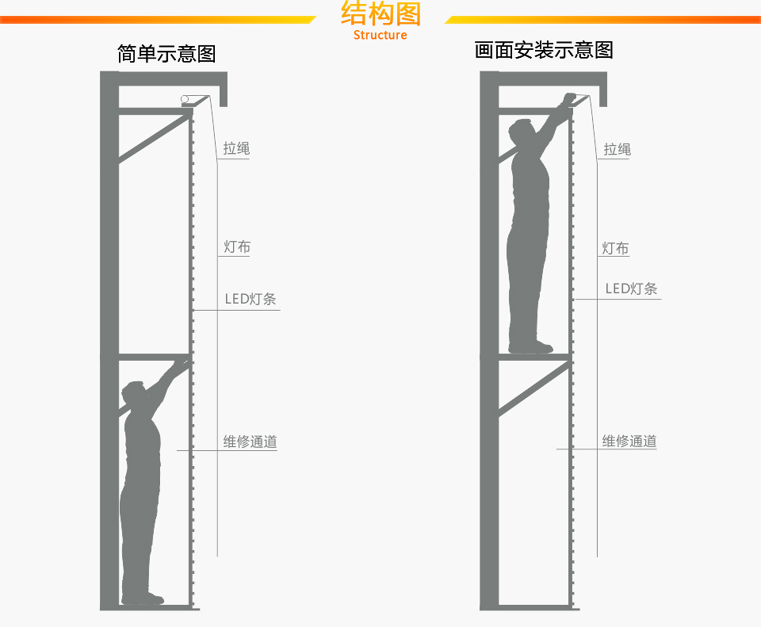 可以內(nèi)部安裝維護燈條,電源