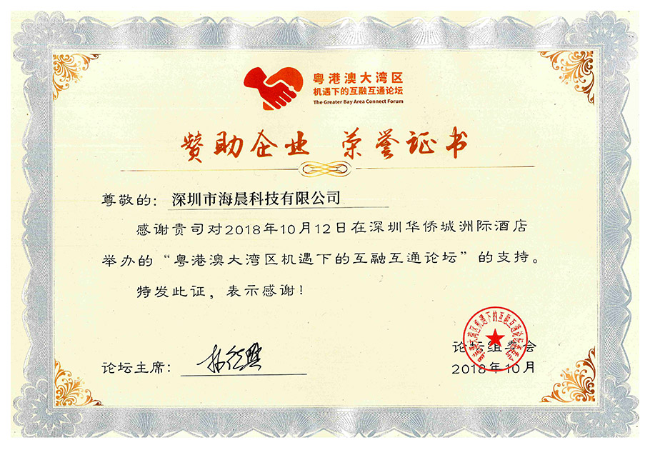 贊助企業(yè)榮譽證書