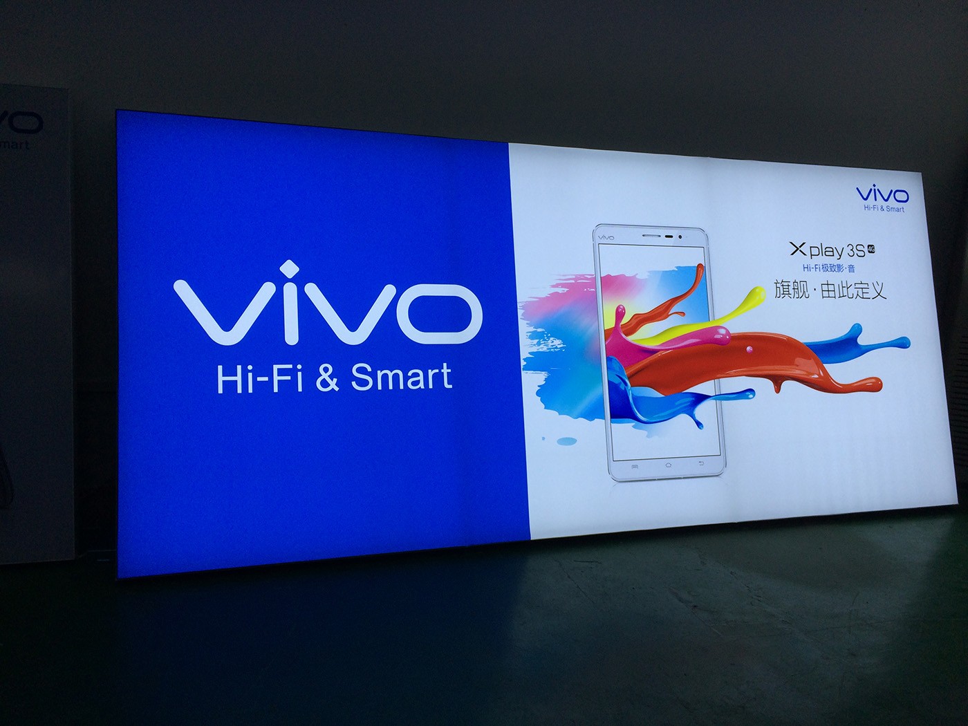 海晨為VIVO手機制定了整套的解決方案,其中不僅僅只是有燈箱的部分,而是包括了整個店面需要用到的一切廣告展示用品。從設(shè)計、生產(chǎn)、安裝到售后服務(wù)一體化,為客戶解決問題的整體解決方案。